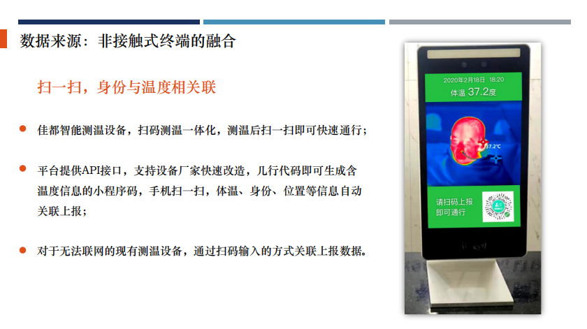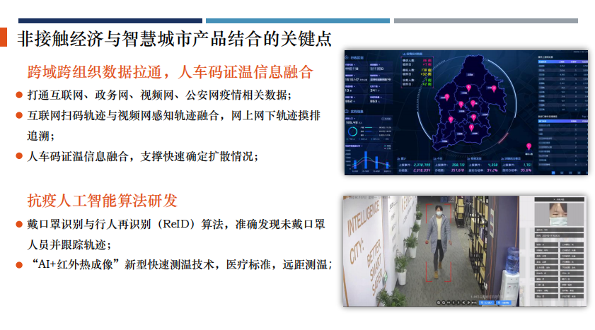 kaiyun.com科技智慧城市业务群产品经理袁名人分享了“非接触经济跟智慧城市新产品结合”的案例。“非接触型经济”已然崛起,其中的技术代表在对抗疫情过程中,发挥着重要的作用。数据采集,如测温、人脸等,加之与视频、地图等方面的融合,将在各个场景中达到非接触效果的最大化。而这些数字化、智能化的沉淀,正在以”非接触“的形式惠及更多的行业与社会公共事务。