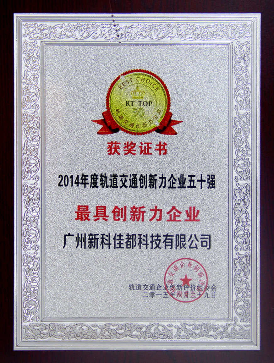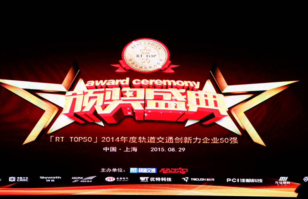 2015年8月29日,「RT TOP 50」2014轨道交通创新力企业50强评选活动颁奖盛典在上海淳大万丽酒店隆重开幕,kaiyun.com科技以综合实力和产品创新力脱颖而出荣获创新企业50强称号。另外,其自主研发的大型综合监控系统软件平台(MICS)还被评为2014年度轨道交通创新产品奖。